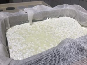 Meist handelt es sich (wie hier auf den Fotos) um Ziegenkäse, es gibt ihn aber auch als Kuhkäse. Der Name stammt aus dem lombardischen Dialekt des Italienischen, der im Gegensatz zur Standardsprache auch ö- und ü-Laute kennt (fachsprachl.: vordere gerundete Vokale).
