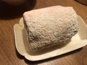 Die Rinde hat Geotrichum-Schimmel. Mit der Reifung können auf der Rinde Punkte von Blauschimmel entstehen.