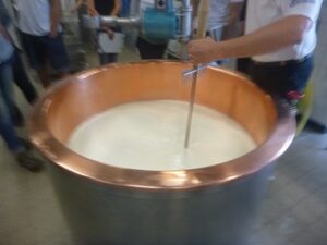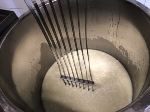 Wenn wir in der Käserei von einer Harfe sprechen (oder auf Spanisch oder Katalanisch von einer „lira“, also wörtlich einer Leier), dann meinen wir kein Musikinstrument. Die Käseharfe ist ein Gerät, mit dem die geronnene Milch, also die Gallerte, im Kessel zu Bruchkörnern geschnitten wird.