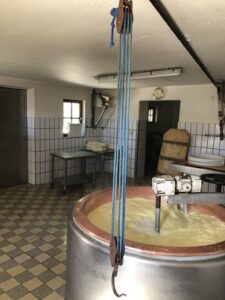 Wenn man große Mengen Bruch auf einmal aus dem Käsekessel auszieht (mit einem Käsetuch), ist ein in der Käserei installierter Kran hilfreich. Dies kann beim Gesamtauszug in die Presswanne sein, aber auch beim Auszug großer Laibe, wie das beim Vorarlberger Bergkäse üblich ist.