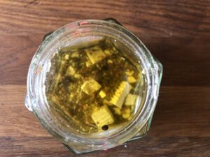 Öl, meist Rapsöl, wird manchmal verwendet, um Käse einzulegen. Hirtenkäse und Labneh sind in Öl eingelegt zu kaufen. Auch Olivenöl mit seinem beliebten Aroma wird für Käse genutzt.