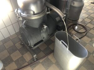 Wenn in der Milchwirtschaft von einer Zentrifuge die Rede ist, ist in aller Regel eine Rahmzentrifuge gemeint. Man zentrifugiert Milch oder Molke, um Rahm zu bekommen. Milch zentrifugiert man in Großbetrieben auch, um nachher wieder Rahm hinzuzufügen und sie so auf einen bestimmten Fettgehalt einzustellen. Das Zentrifugieren der Molke statt der Milch für Butter und/oder Ziger hat den Vorteil, dass man der Milch kein Fett entzieht.